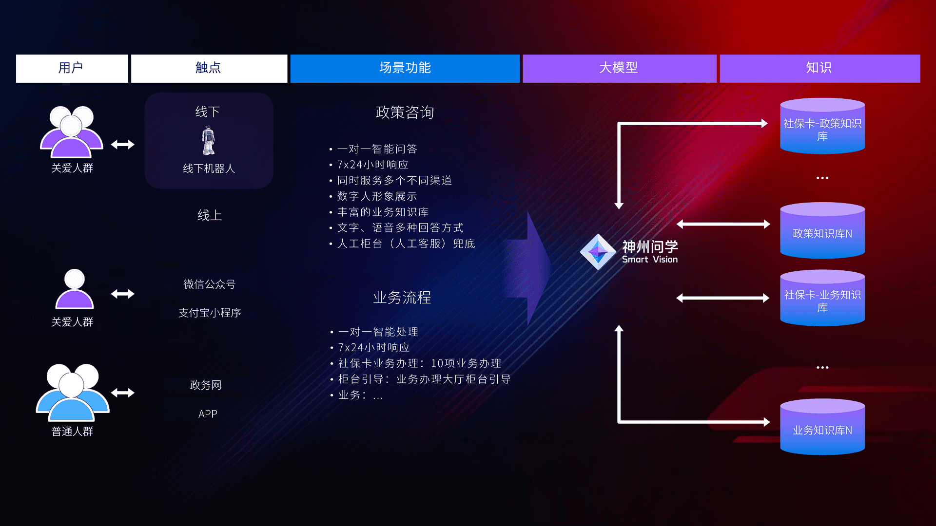 • 线上线下全覆盖:线上提供微信公众号、、支付宝小程序、、、政务网、、、app多种渠道,,与线下机器人形成完整服务体系。。